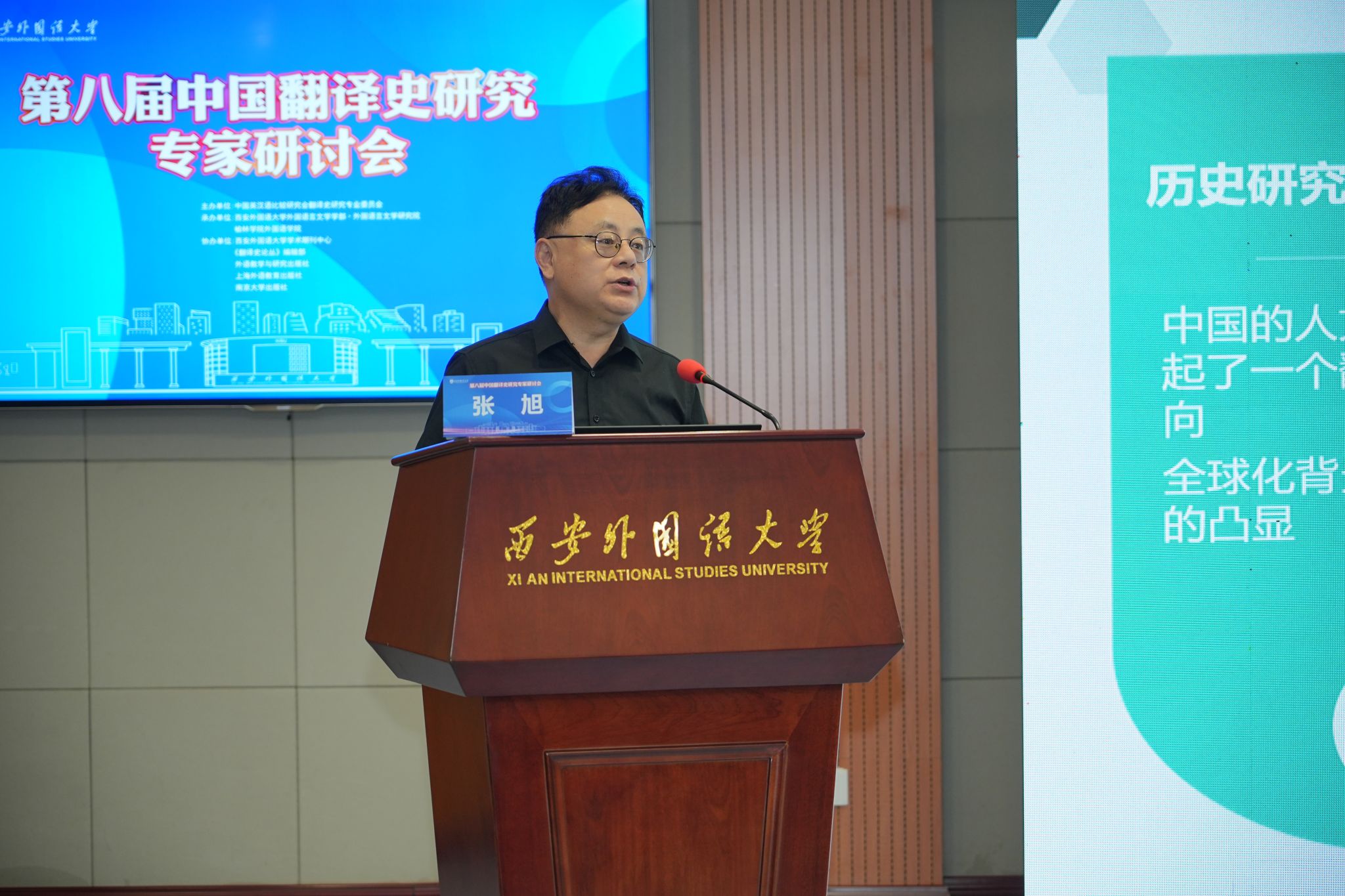 研讨会上,张旭教授应邀做大会主旨报告“区域翻译史研究:现状、问题、方法与出路”,系统构建了区域翻译史的理论体系。该报告总结了国内外研究现状,揭示了当前区域翻译史研究中史料挖掘尚显不足、研究对象相对模糊、理论视角仍显狭隘等问题,强调未来需整合翻译学、历史学、社会学等多学科方法,构建具有中国特色的区域翻译史研究体系。