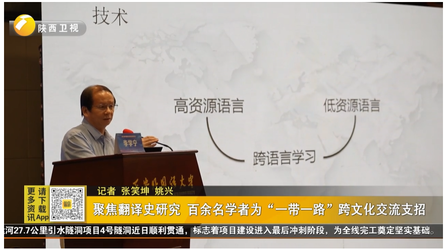 会议期间,张旭教授还接受了陕西卫视采访。张旭教授认为翻译史研究是连接过去与未来的学术桥梁,更是解码多元文化交流密码的密钥。中国是一个翻译大国,翻译历史悠久。在新的时代,讲述中国故事,是当代学者应该做的事情。