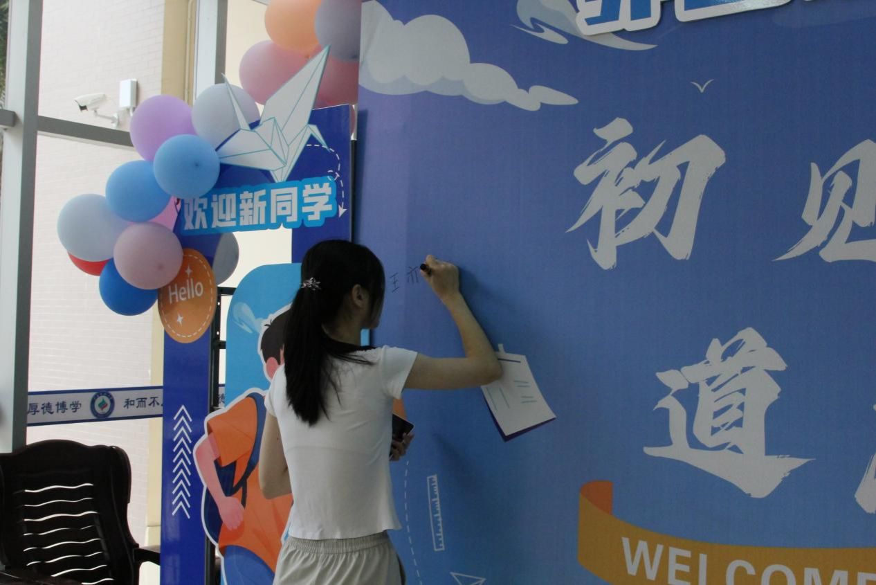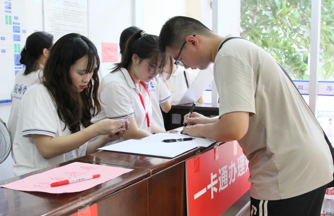 报到现场热闹非凡,新生们怀揣着对未来的无限憧憬,在家长的陪伴下有条不紊地办理各项手续。他们认真倾听工作人员的讲解,仔细填写各类表格,积极了解校园的各项规章制度和设施情况。许多新生还在签名墙上留下了自己的寄语,写下对大学生活的美好期许。有的新生希望在大学里能够学好专业知识,提升自己的语言能力;有的则期待能够参加丰富多彩的社团活动,结交更多志同道合的朋友;还有的立志要在大学期间努力拼搏,为未来的职业发展打下坚实的基础。