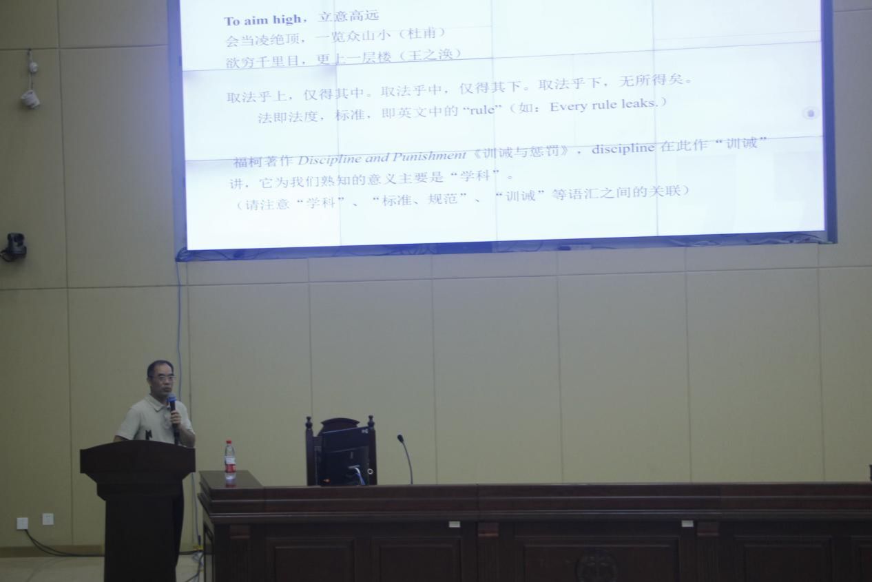 随后,张跃军教授围绕英语学科发展趋势与专业人才培养理念发表讲话。他强调,新时代英语专业人才需具备 “中西兼修,强化合作” 的核心能力,既要深耕语言文学领域,筑牢语言应用与文学赏析基础,也要主动学习中华优秀传统文化,提升跨文化沟通能力,讲好中国故事。同时,他鼓励新生积极参与学科竞赛、国际交流与实践项目,在多元实践中提升综合竞争力,为未来职业发展或学术深造筑牢根基。