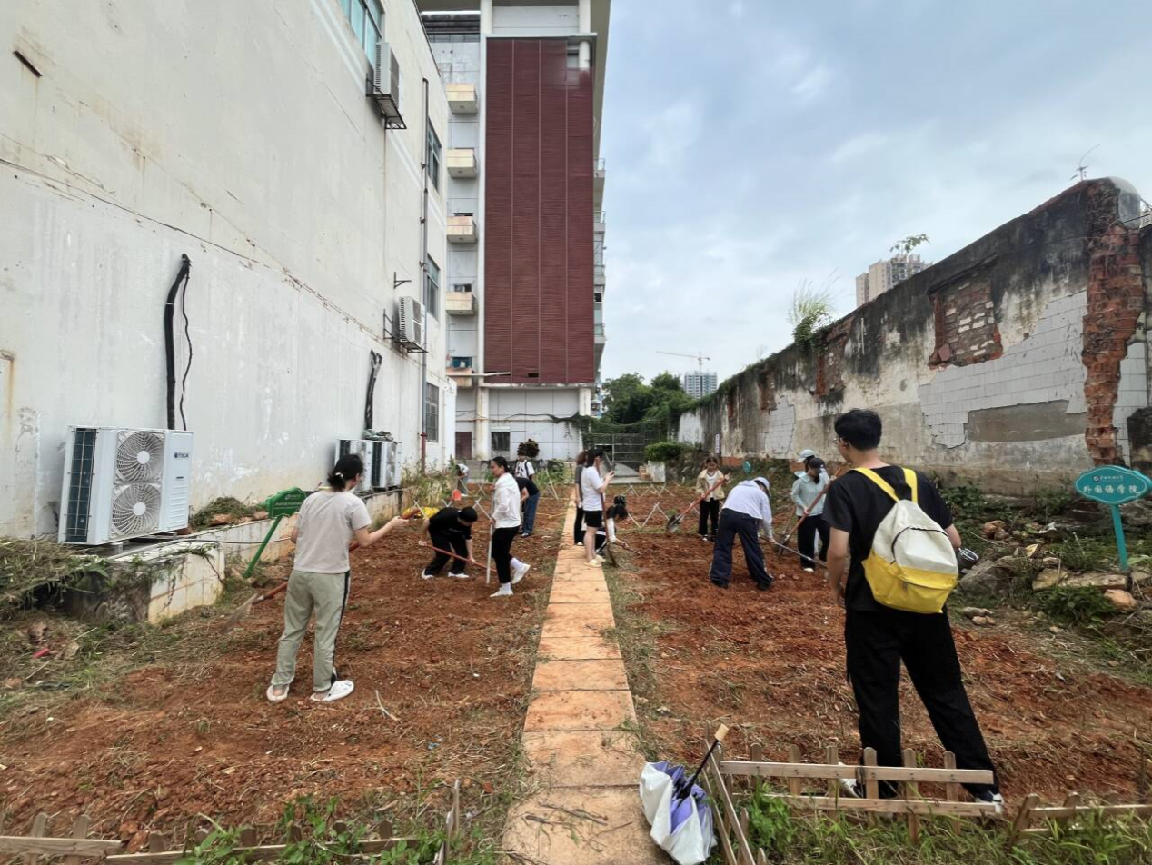 9月20日下午,2024级英语专业(公费师范中小学)1班在广西民族大学相思湖校区学生劳动基地开展集体垦地、除草等农事劳作,于身体力行中弘扬劳动精神,凝聚集体力量。