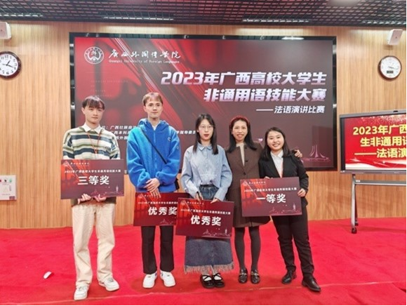 法语专业学生参加 “广西高校非通用语种技能竞赛法语演讲比赛”,连续多年在决赛中获得优异成绩