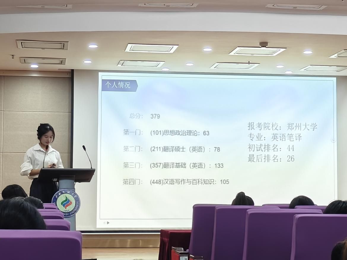 活动中,唐凯芸、洪婧琦、岳笑杰等十位考研优秀学子结合自身经历,围绕院校选择、备考规划、复习策略、心态调整等核心问题展开经验分享,并针对当前考研形势与就业环境提出实用建议。韦植朗老师在总结发言中勉励同学们科学规划备考路径、坚定信心,并表示学院将持续为考研学子提供全方位支持与帮助。